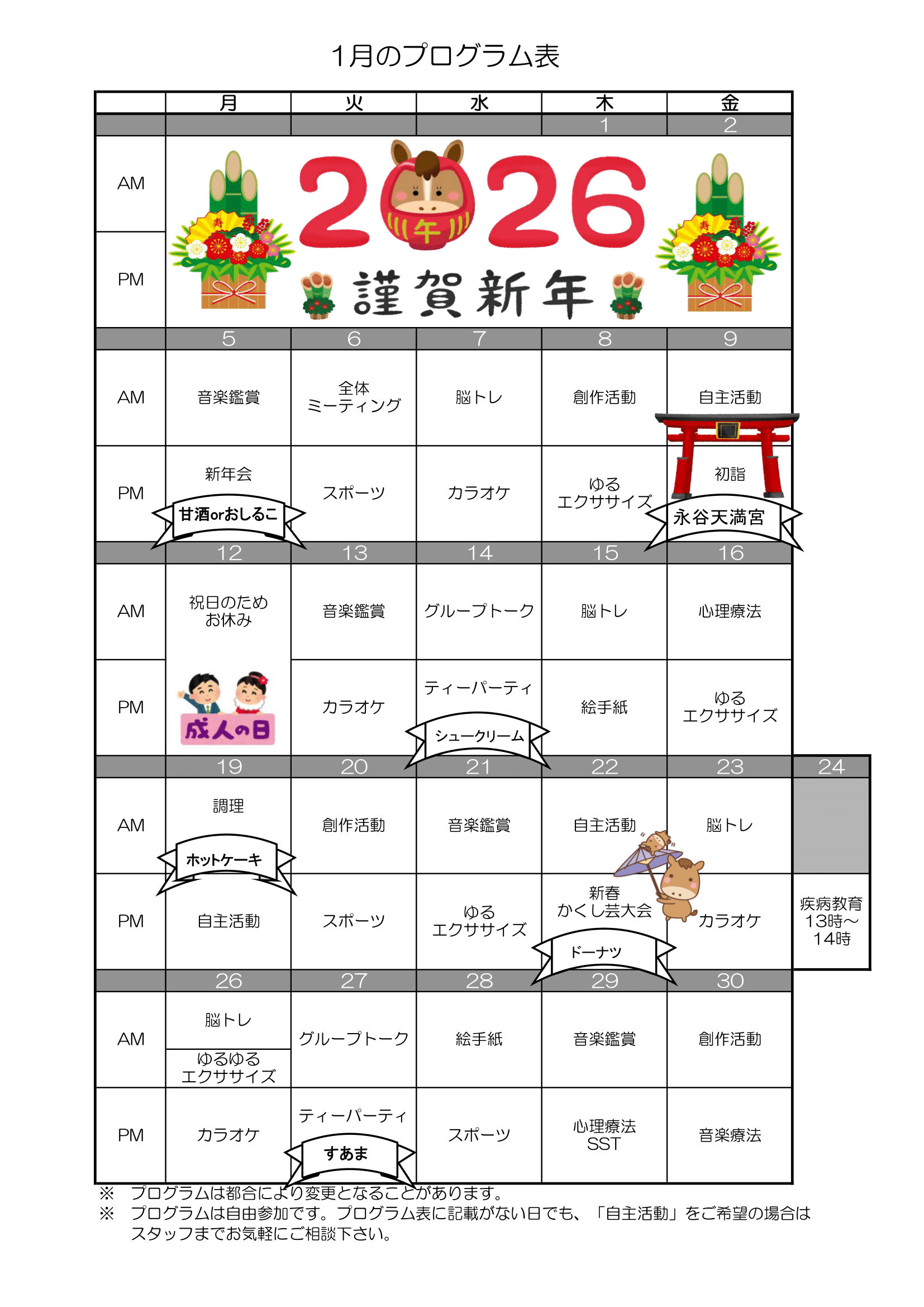 プログラム表2026年1月